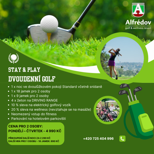 - 1 x golfová hra 18 jamek pro 2 osoby