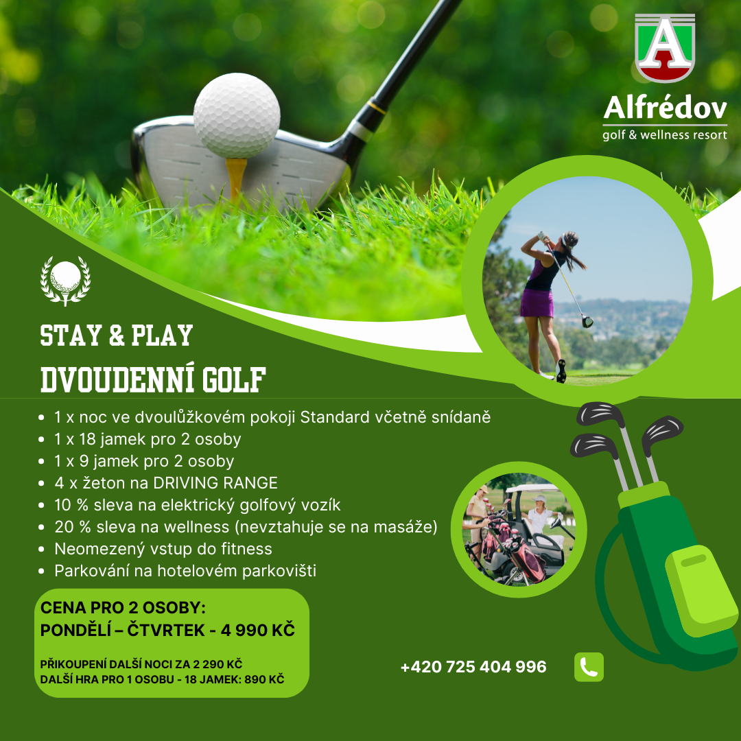- 1 x golfová hra 9 jamek pro 2 osoby